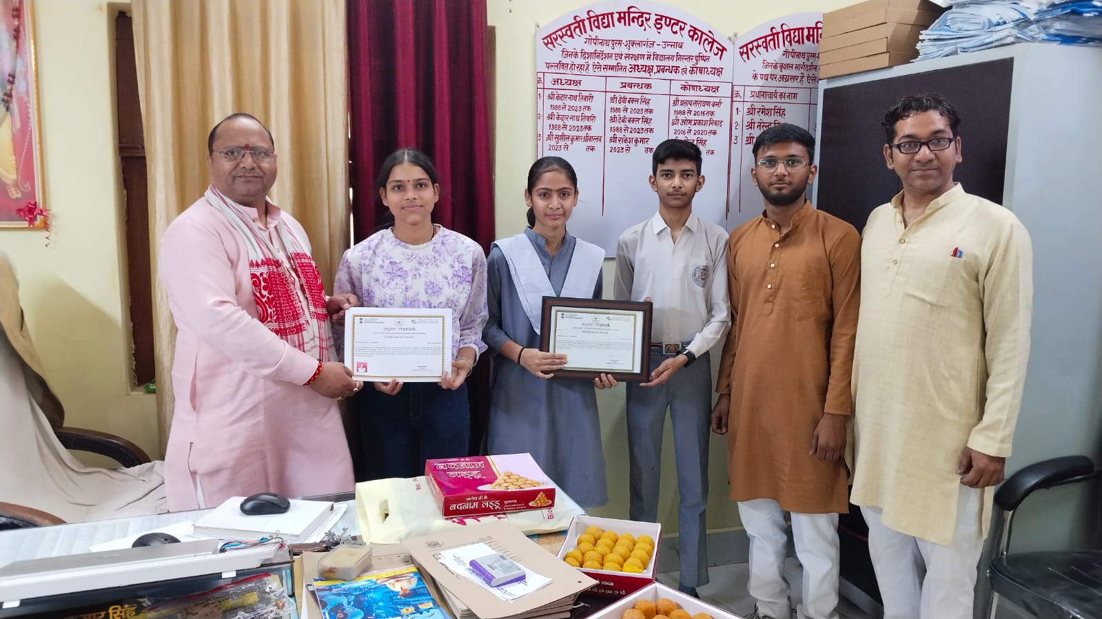 विद्यालय के प्रधानाचार्य श्री श्रवण कुमार सिंह जी ने विद्यार्थियों का मुँह मीठा कराकर उन्हें बधाई दी तथा उनके उज्ज्वल भविष्य की कामना की। साथ ही संबंधित आचार्यों के उत्कृष्ट योगदान की सराहना करते हुए भविष्य में भी इसी प्रकार नवाचार और वैज्ञानिक गतिविधियों में आगे बढ़ने के लिए प्रेरित किया।