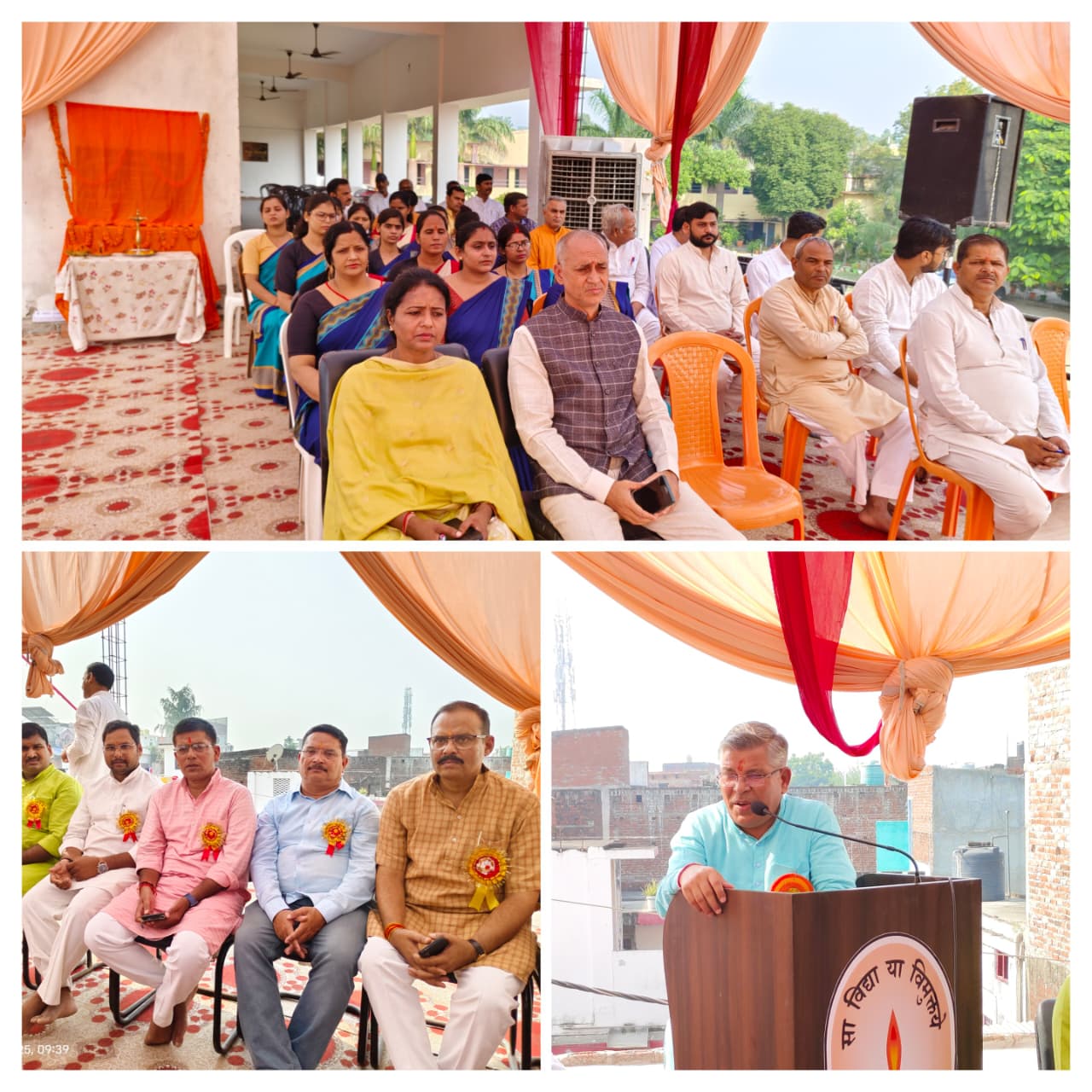 मुख्य अतिथि श्रीमान कौशल जी ने अपने उद्बोधन में कहा कि “विद्यालय समाज और राष्ट्र निर्माण की प्रयोगशाला है। यहाँ के विद्यार्थी संस्कार, अनुशासन और चरित्र के आधार पर भारत के उज्ज्वल भविष्य के निर्माता बनेंगे।” विद्याभारती का उद्देश्य संस्कारयुक्त, राष्ट्रनिष्ठ एवं चरित्रवान नागरिक तैयार करना है। विद्यालय के आचार्य और भैया बहन इस दिशा में सराहनीय कार्य कर रहे हैं। कार्यक्रम का संचालन श्री वेद प्रकाश मिश्र एवं श्री राजेन्द्र कुमार मिश्र द्वारा कुशलतापूर्वक किया गया। विद्यालय के प्रबंधक कमलेश कुमार अग्रवाल जी ने उपस्थित सभी अतिथियों का आभार एवं धन्यवाद ज्ञापित किया। इस अवसर पर कृष्ण कुमार जी विभाग प्रचारक,अजय जी जिला प्रचारक, भूपेंद्र जी जिला कार्यवाह,आनंद जी, यशवेंद्र विक्रम सिंह राजा पयागपुर, राम नारायण पाण्डेय जी अध्यक्ष,अनूप श्रीवास्तव जी, प्रधानाचार्य विजय बहादुर सिंह जी,विद्यालय परिवार (समस्त सम्मानित आचार्य बंधु एवं आचार्या बहनें) अभिभावकगण एवं स्थानीय गणमान्य नागरिकों की उपस्थिति ने समारोह को भव्यता प्रदान की।